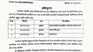 धाराशिव जिल्ह्यातील राज्य शासकीय कार्यालयांना तीन दिवसाचे सुट्टी जाहीर जिल्हाधिकारी यांच्या आदेशावरून राज्य शासकीय कार्यालयांना तीन दिवसाचा सुट्टी जाहीर करण्यात…